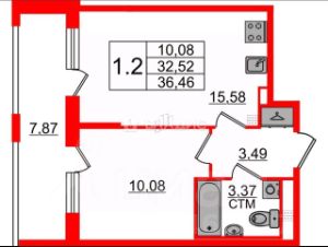 — Общая площадь: 36,46 м²