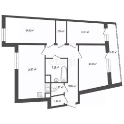 * Квартира отличается рациональной планировкой с тремя изолированными комнатами площадью 13, 14 и 17 кв.м, что обеспечивает комфорт и приватность для всех членов семьи.