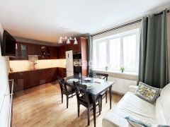 Просторная трехкомнатная квартира площадью 74 кв.м расположена в современном жилом комплексе "Живи в Рыбацком" в шаговой доступности от станции метро "Рыбацкое".