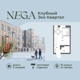 Продаётся квартира-студия 32 м² в эко-квартале NEGA в Новом Девяткино. Квартира находится на 3 этаже пятиэтажного дома — это единственный комплекс такого формата в Девяткино, без "стены" из высоток за окном. Планировка позволяет разделить приватную и общую зоны, удобно расставить мебель и организовать хранение. Отделка от застройщика: можно въехать сразу после сделки или сделать интерьер под себя без лишних переделок.
