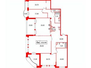 5 комнат, 233 м2 на последнем этаже клубного дома.