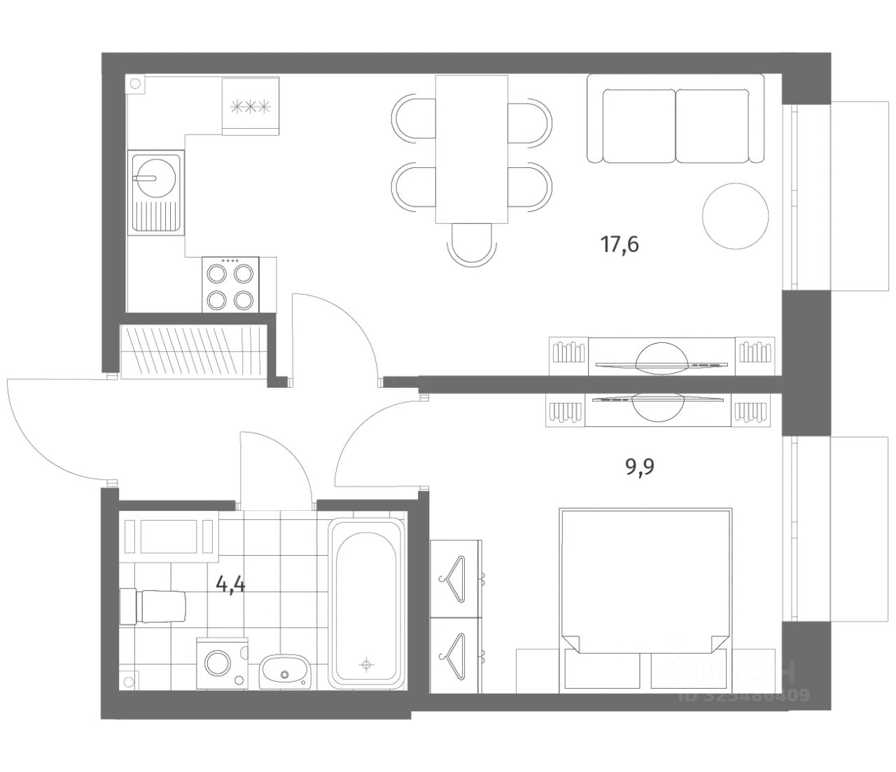 Продается квартира площадью 35.9 м²