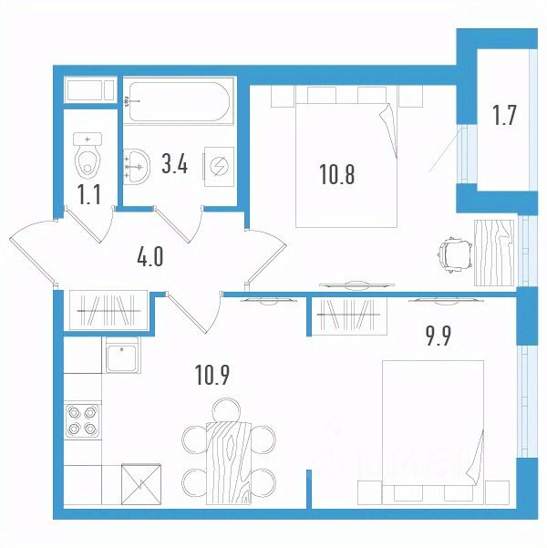 Продаётся 2-комнатная квартира в сданном доме (Старорусский пр-т, 3к2 (Дом 1)), срок сдачи: II-кв. 2025, общей площадью 41 кв.м., на 10 этаже.