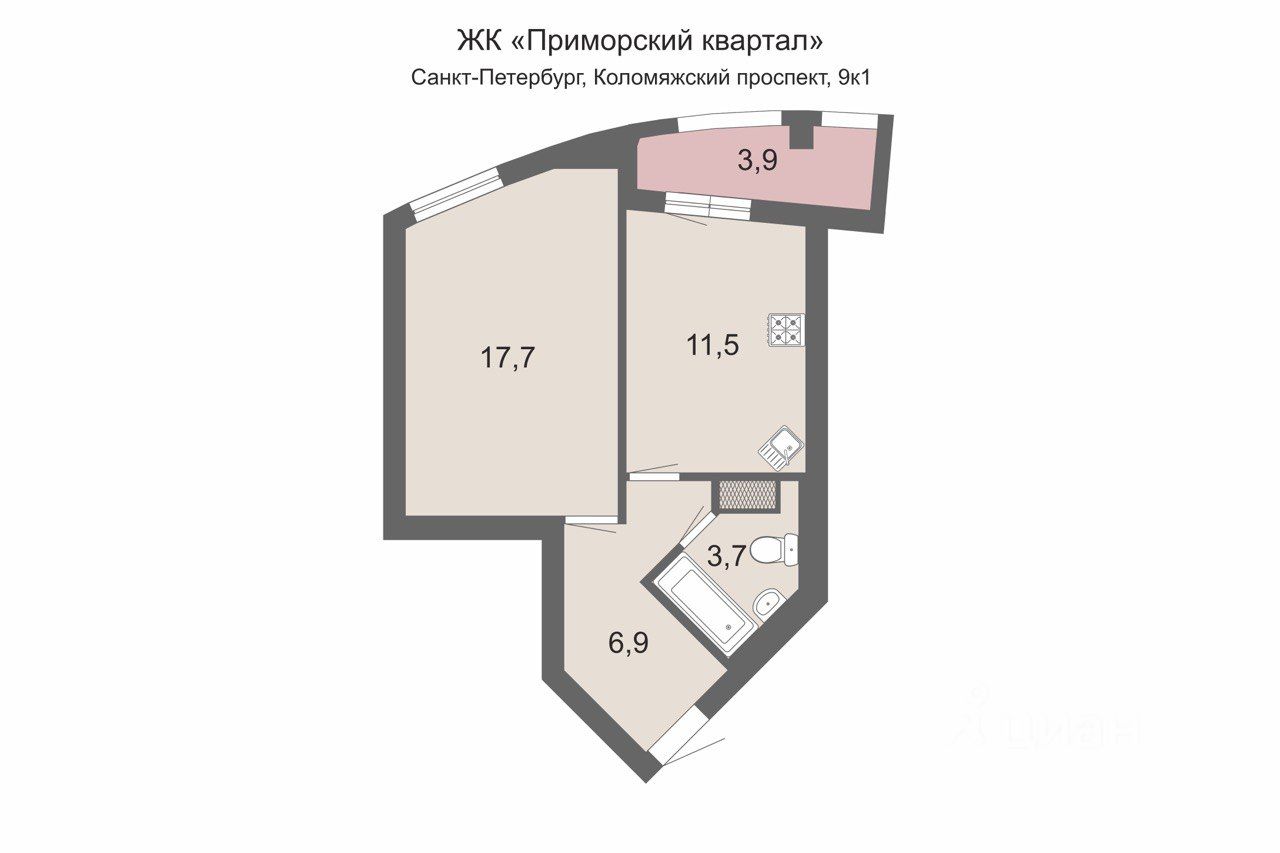 Продаётся однокомнатная квартира 40 м² в ЖК Приморский квартал.