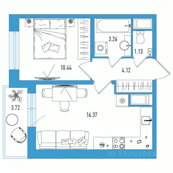 Продаётся 1-комнатная квартира в строящемся доме (Дом 1), срок сдачи: II-кв. 2027, общей площадью 37.18 кв.м., на 13 этаже.