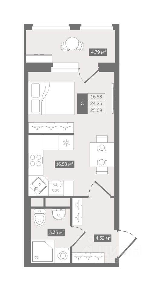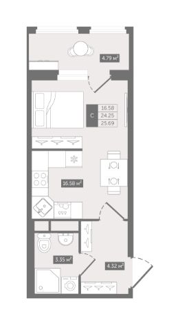 Продаётся студия в строящемся доме (Корпус А), срок сдачи: II-кв. 2026, общей площадью 25.69 кв.м., на 6 этаже. Новый жилой комплекс "UP-квартал Воронцовский" от застройщика "ГК ФСК" расположен по адресу: Россия, Ленинградская область, Всеволожский район, деревня Новое Девяткино, Главная улица