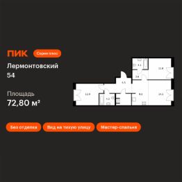 Продаётся 2-комн. квартира площадью 72,8 кв.м на 2 этаже 9 этажного дома (Корпус 2.2, Секция 9) проекта ПИК Лермонтовский 54. Светлый просторный подъезд на уровне земли, функциональная планировка, большие окна, без отделки.
