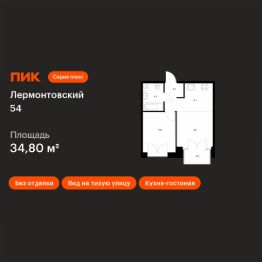 Продаётся 1-комн. квартира площадью 34,8 кв.м на 5 этаже 9 этажного дома (Корпус 2.2, Секция 13) проекта ПИК Лермонтовский 54. Светлый просторный подъезд на уровне земли, функциональная планировка, большие окна, без отделки.