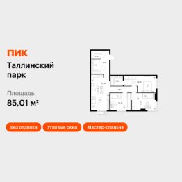 Продаётся 3-комн. квартира площадью 85,01 кв.м на 6 этаже 12 этажного дома (Корпус 4.2, Секция 1) проекта ПИК Таллинский парк. Светлый просторный подъезд на уровне земли, функциональная планировка, большие окна, без отделки.