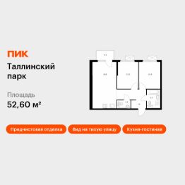 Продаётся 2-комн. квартира площадью 52,6 кв.м на 4 этаже 12 этажного дома (Корпус 3.1, Секция 2) проекта ПИК Таллинский парк. Светлый просторный подъезд на уровне земли, функциональная планировка, большие окна, предчистовая отделка.