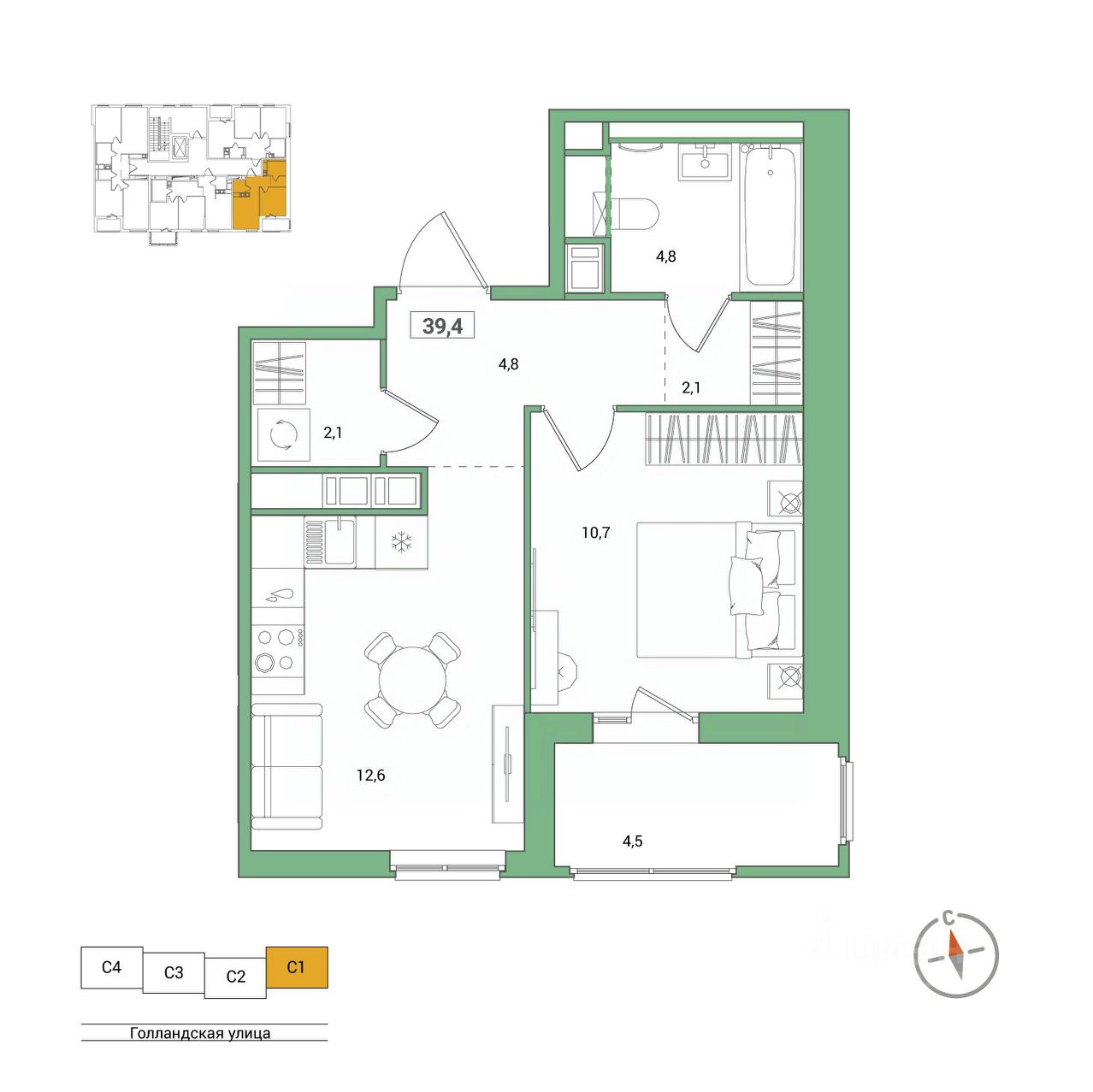 Продаётся 1-комнатная квартира в строящемся доме (Корпус 2), срок сдачи: IV-кв. 2026, общей площадью 39.4 кв.м., на 7 этаже. Новый жилой комплекс "Янила Форест" от застройщика "Ленстройтрест" расположен по адресу: Россия, Ленинградская область, Всеволожский район, Заневское городское поселение, городской посёлок Янино-1, Голландская улица