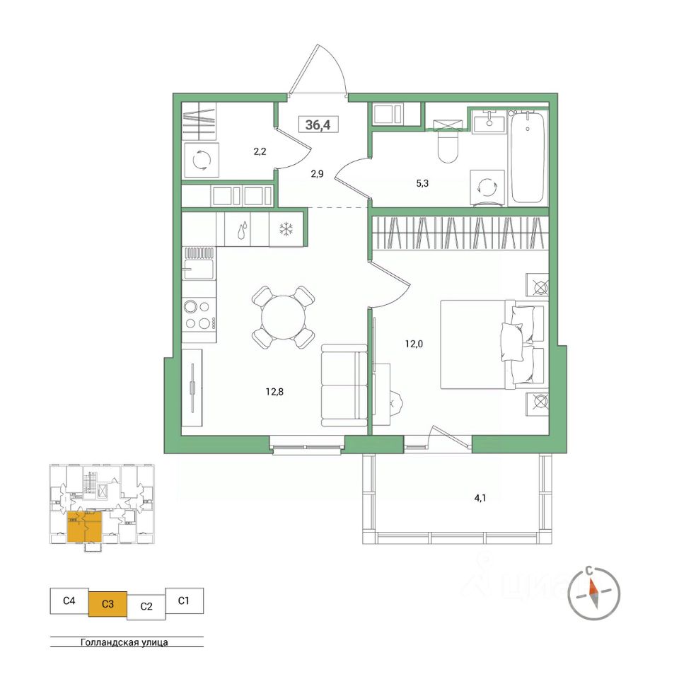 Продаётся 1-комнатная квартира в строящемся доме (Корпус 2), срок сдачи: IV-кв. 2026, общей площадью 36.4 кв.м., на 8 этаже. Новый жилой комплекс "Янила Форест" от застройщика "Ленстройтрест" расположен по адресу: Россия, Ленинградская область, Всеволожский район, Заневское городское поселение, городской посёлок Янино-1, Голландская улица