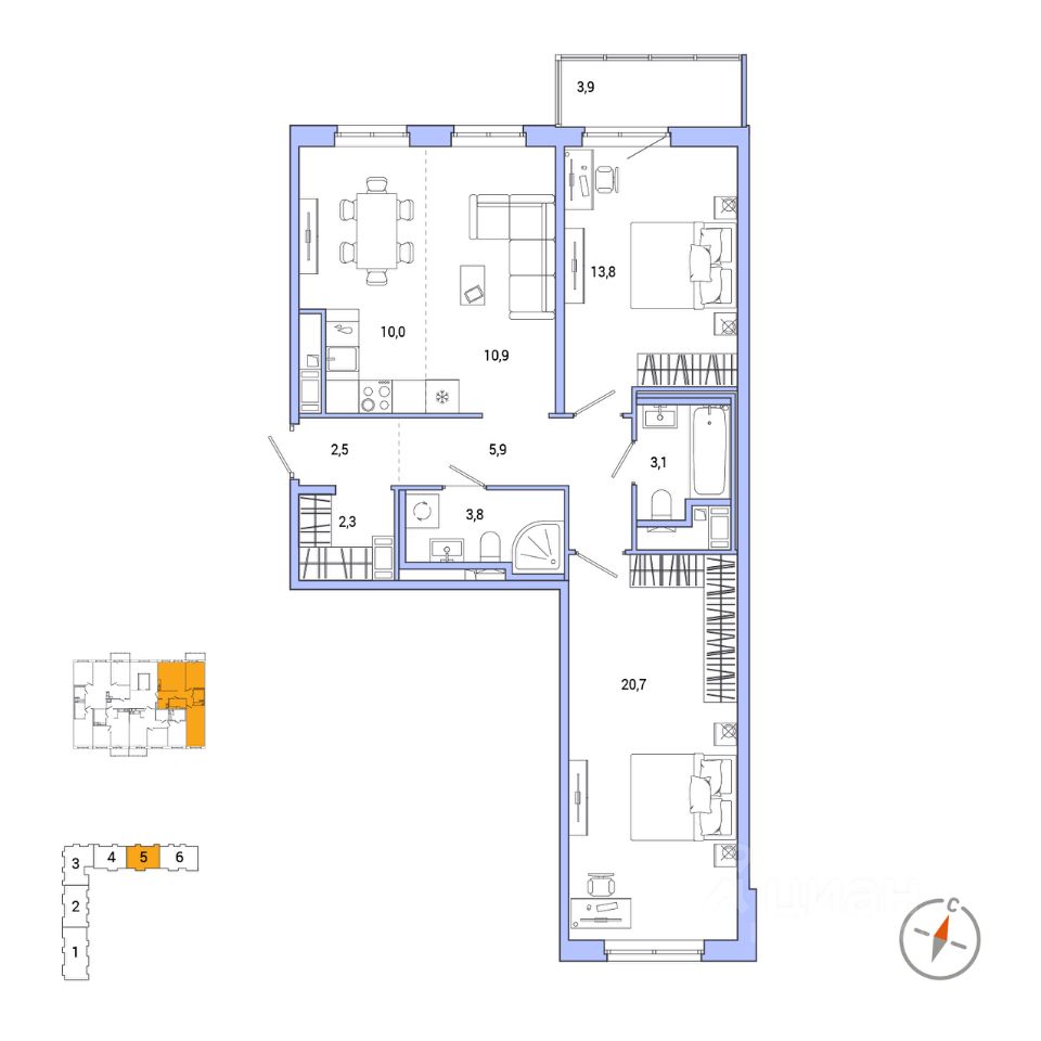 Продаётся 3-комнатная квартира в строящемся доме (Корпус 3.1.1), срок сдачи: IV-кв. 2027, общей площадью 74.03 кв.м., на 4 этаже. Жилой комплекс Окла находится в Приморском районе Санкт-Петербурга, в самом сердце зеленого массива на 140 гектаров. Рядом с комплексом расположены Суздальские озера и Шуваловский парк, а в 10 минутах езды Юнтоловский заповедник. Здания проекта органично вписаны в холмистый ландшафт с вековыми елями, где водятся зайцы, ежи, бобры и птицы.