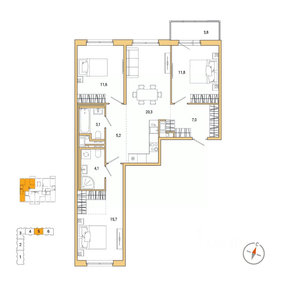 Продаётся 3-комнатная квартира в строящемся доме (Корпус 3.1.1), срок сдачи: IV-кв. 2027, общей площадью 80.09 кв.м., на 4 этаже. Жилой комплекс Окла находится в Приморском районе Санкт-Петербурга, в самом сердце зеленого массива на 140 гектаров. Рядом с комплексом расположены Суздальские озера и Шуваловский парк, а в 10 минутах езды Юнтоловский заповедник. Здания проекта органично вписаны в холмистый ландшафт с вековыми елями, где водятся зайцы, ежи, бобры и птицы.