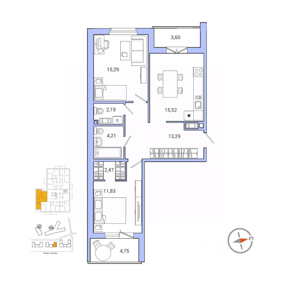 Продаётся 2-комнатная квартира в сданном доме (Корпус 5.2), срок сдачи: III-кв. 2025, общей площадью 69.17 кв.м., на 7 этаже. Жилой комплекс "IQ Гатчина" расположен на въезде в Гатчину, неподалеку от г. Санкт-Петербурга. Расстояние до КАД - 24 км, возможен проезд на личной автомашине в центр Санкт-Петербурга по Пулковскому шоссе. Всего в 400 метрах от комплекса находится ж/д станция "Татьянино", с которой ходят электрички до Балтийского вокзала, время в пути - 50 минут. Можно добраться от метро "Московская" на маршрутном такси К100А, К11, К18.