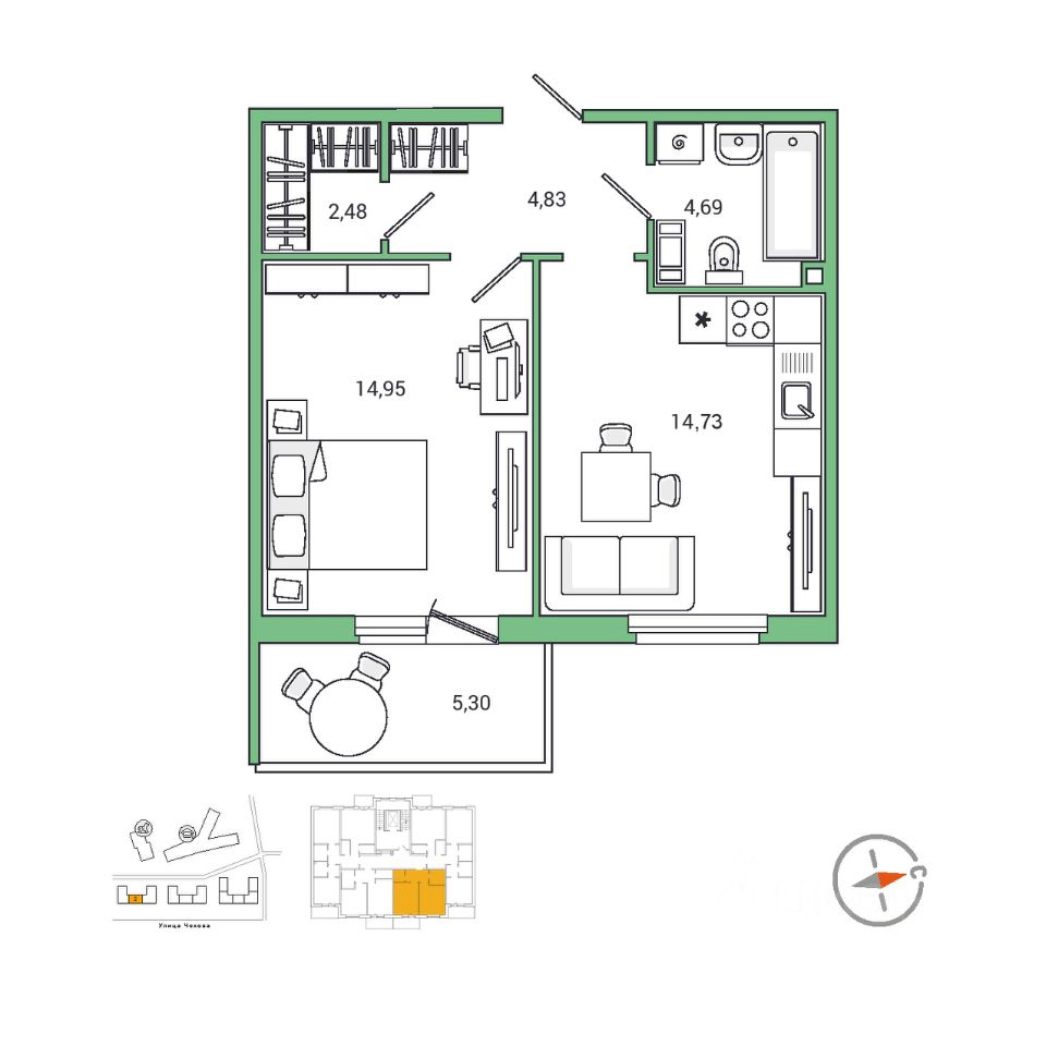 Продаётся 1-комнатная квартира в сданном доме (Чехова, 39 (Корпус 5.3)), срок сдачи: III-кв. 2025, общей площадью 43.47 кв.м., на 2 этаже. Жилой комплекс "IQ Гатчина" расположен на въезде в Гатчину, неподалеку от г. Санкт-Петербурга. Расстояние до КАД - 24 км, возможен проезд на личной автомашине в центр Санкт-Петербурга по Пулковскому шоссе. Всего в 400 метрах от комплекса находится ж/д станция "Татьянино", с которой ходят электрички до Балтийского вокзала, время в пути - 50 минут. Можно добраться от метро "Московская" на маршрутном такси К100А, К11, К18.