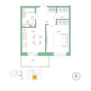 Продаётся 1-комнатная квартира в сданном доме (4 очередь, корпус 2), срок сдачи: III-кв. 2025, общей площадью 36.45 кв.м., на 1 этаже. Расположение, транспортная доступность