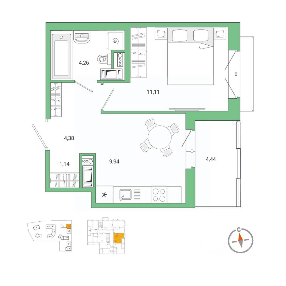Продаётся 1-комнатная квартира в сданном доме (4 очередь, корпус 1), срок сдачи: III-кв. 2025, общей площадью 33.15 кв.м., на 11 этаже. Расположение, транспортная доступность