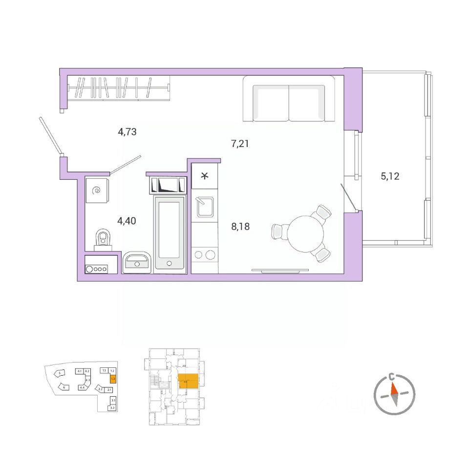 Продаётся 1-комнатная квартира в сданном доме (4 очередь, корпус 1), срок сдачи: III-кв. 2025, общей площадью 25.56 кв.м., на 2 этаже. Расположение, транспортная доступность