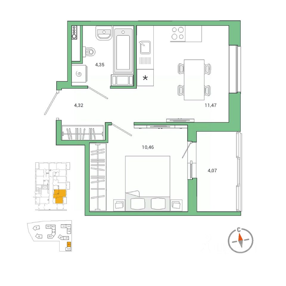 Продаётся 1-комнатная квартира в сданном доме (Лесная, 9к3 (4 очередь, корпус 3)), срок сдачи: III-кв. 2025, общей площадью 32.64 кв.м., на 1 этаже. Расположение, транспортная доступность