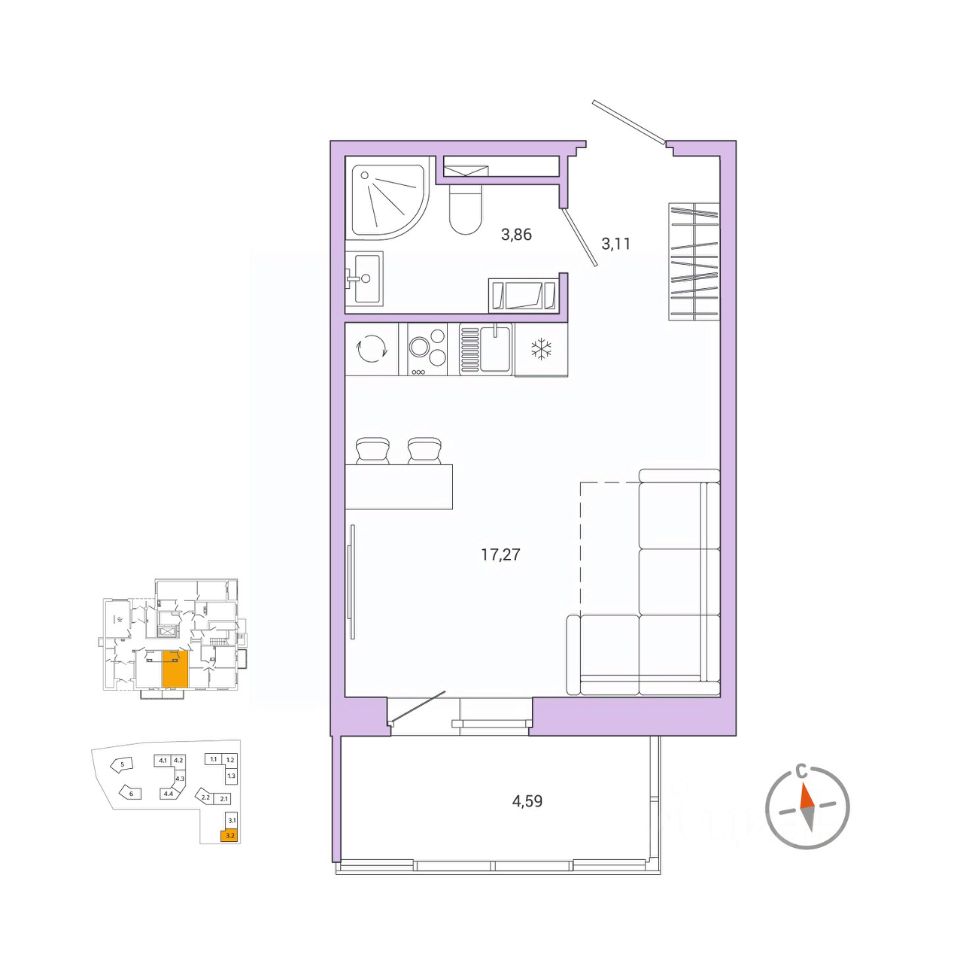 Продаётся 1-комнатная квартира в сданном доме (Лесная, 9к3 (4 очередь, корпус 3)), срок сдачи: III-кв. 2025, общей площадью 25.18 кв.м., на 1 этаже. Расположение, транспортная доступность