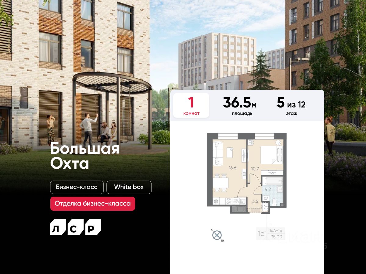 Продаётся 1-комнатная квартира в ЖК "Большая Охта" на 5 этаже. Общая площадь составляет 36.50 кв. м. Квартира с white box отделкой. Жилой комплекс "Большая Охта" располагается по адресу Санкт-Петербург, Красногвардейский.