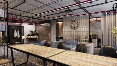 Все апартаменты сдаются с полной чистовой отделкой, выполненной в концептуальном индустриальном стиле. Стены оформлены обоями под покраску в сером оттенке. Одна из стен акцентная - с декоративной штукатуркой, имитирующей бетон. Элементы черного металла представлены в трековых светильниках, дверной фурнитуре и сантехнике. На полу уложен износоустойчивый ламинат с деревянной фактурой. Еще одним элементом индустриального стиля в отделке апартамента является крупноформатный керамогранит на полу и стенах санузла, имитирующий фактуру и цвет кортеновской стали.