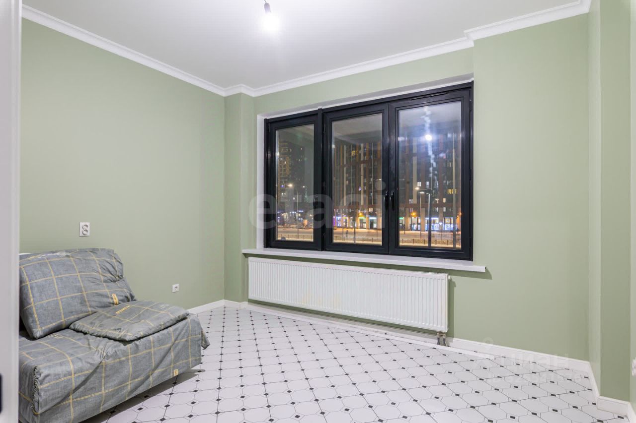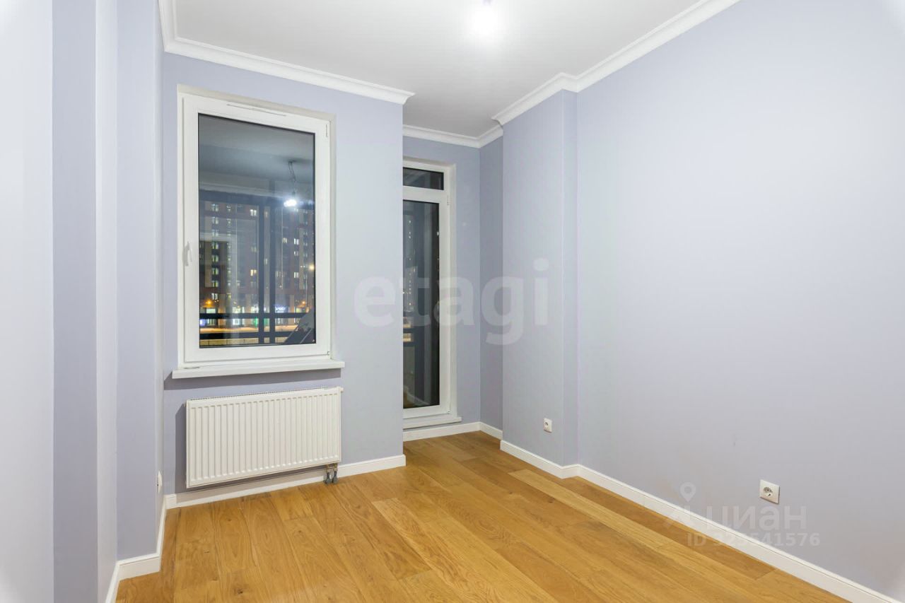 Окна квартиры выходят в сторону Комендантского проспекта, виден так же Лахта Центр. В квартире совмещенный санузел.