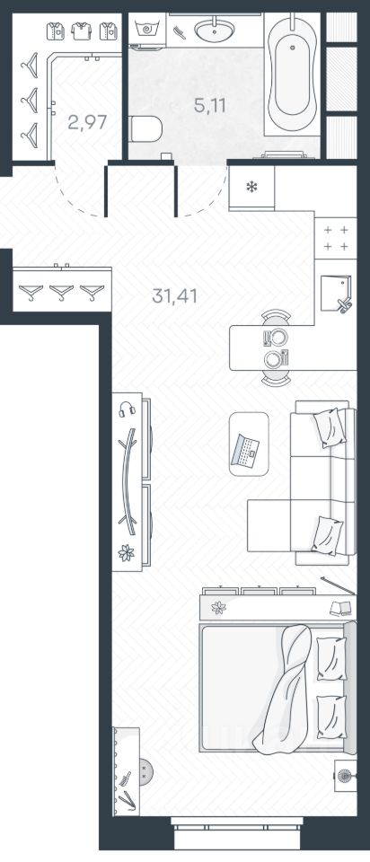 Жилая площадь3,1 м²