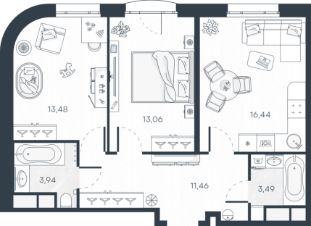 Площадь кухни16,4 м²