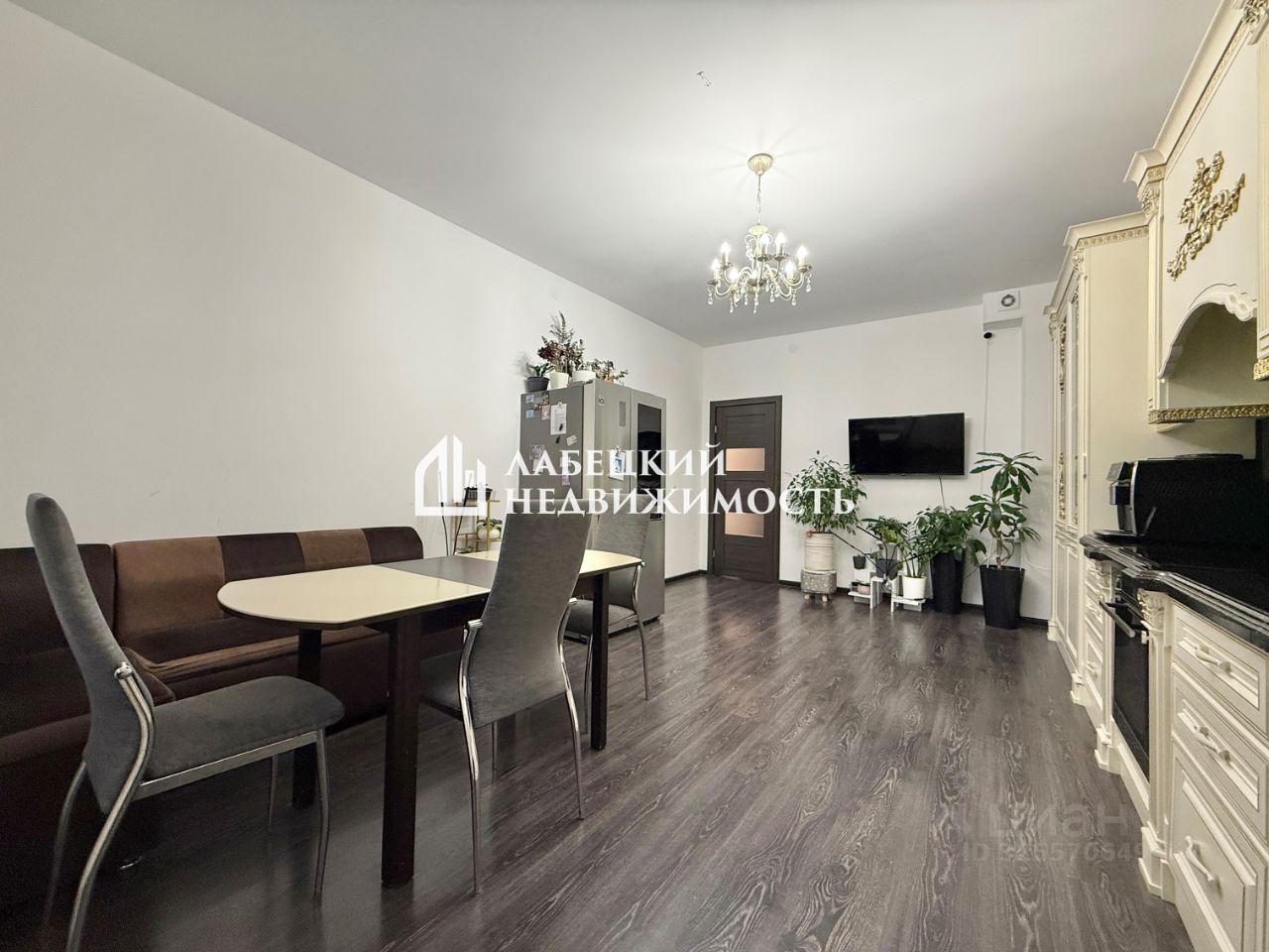 -ПРОСТОРНАЯ кухня-гостиная (22.9 м2) с полноценным кухонным гарнитуром из массива дерева и каменной столешницей, и встроенной качественной техникой
