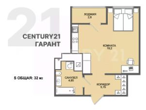 •Редкая ликвидная квартира-студия с двумя окнами, площадью 29.2м2 (без учёта лоджии)
