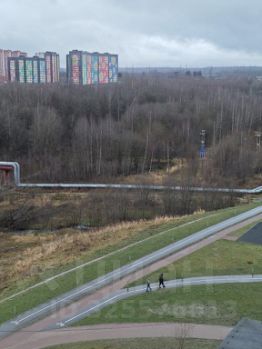Вид из окна на реку Охта и близлежащий небольшой лесной массив.
