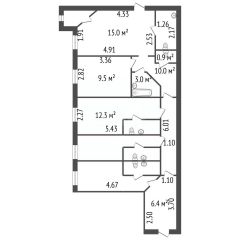 Продается под отель, мини-студии или флиппинг трехкомнатная квартира площадью 77.3 квадратных метра.