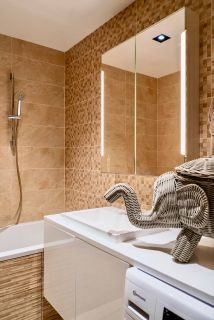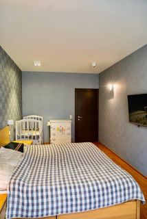 Совмещенный санузел (есть возможность установки второго; сейчас в месте санузла — гардеробная)