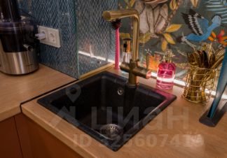 — сама кухня в фасаде софт-тач с немецкой фурнитурой Blum и внутренней подсветкой, фартук из закаленного стекла, закрывающим обои знаменитого английского бренда Cole&Son, установлен фильтр четырехступенчатой очистки воды Aквафор.