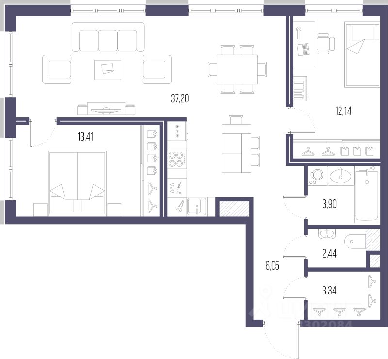 Продаётся 2-комнатная квартира в сданном доме (Стахановцев, 1 (Секция 9)), срок сдачи: I-кв. 2024, общей площадью 77.4 кв.м., на 4 этаже. Новый образ Петербурга