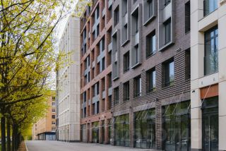 Разнофактурные фасады притягивают внимание и придают кварталу свой неповторимый характер. Каждую секцию хочется рассматривать как отдельный самодостаточный элемент, при этом все вместе они образуют законченную гармоничную композицию.