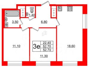 + просторная кухня-гостиная 18.6м