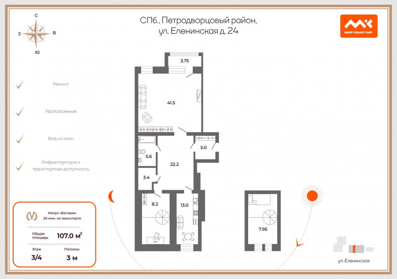 Расположение квартиры еще одно ее неоспоримое преимущество: всего в нескольких шагах раскинулся живописный парк Ораниенбаум, где вы сможете насладиться прогулками на свежем воздухе и единением с природой.