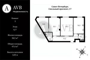 3-комн. квартира 97,4 м² с дизайнерским ремонтом в элитном ЖК "Смольный проспект" — Смольный пр., 17