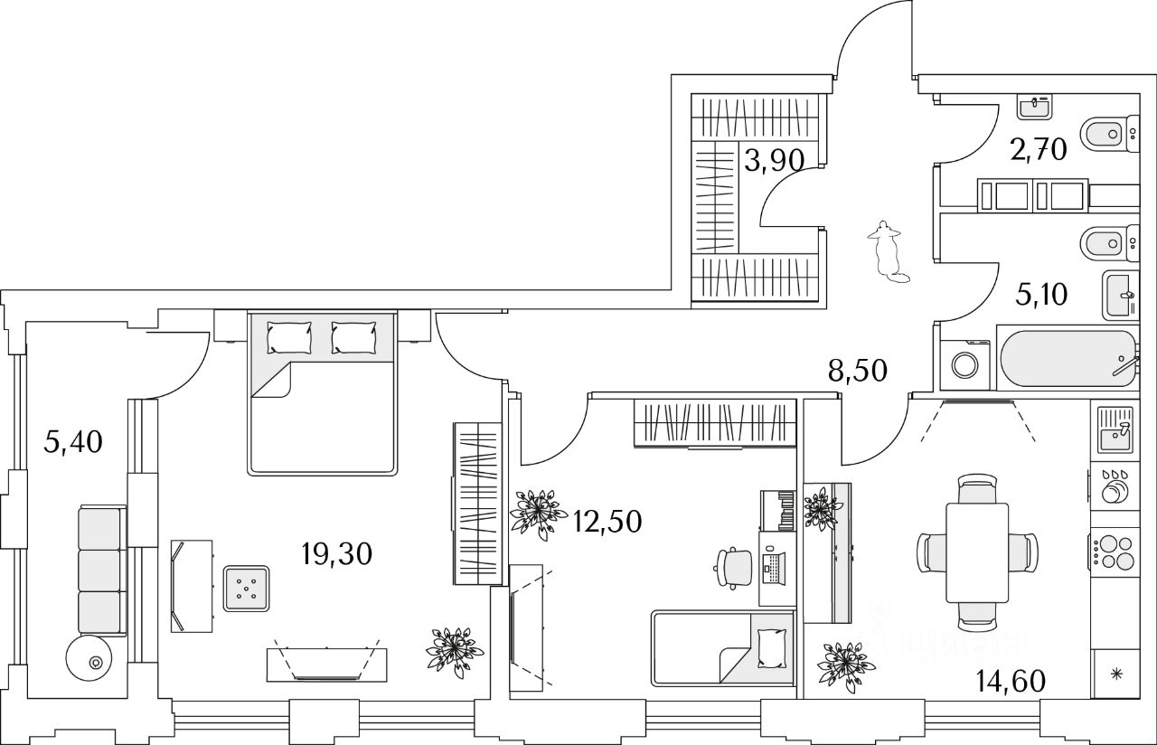 Квартира находится в 13 этажном доме, в Корпус К10 - Тайм Сквер на 5 этаже. Общая площадь квартиры 69,10 кв.м.