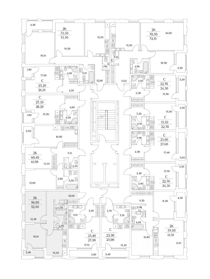 Квартира находится в 13 этажном доме, в Корпус К9 - Тайм Сквер на 9 этаже. Общая площадь квартиры 52,30 кв.м.