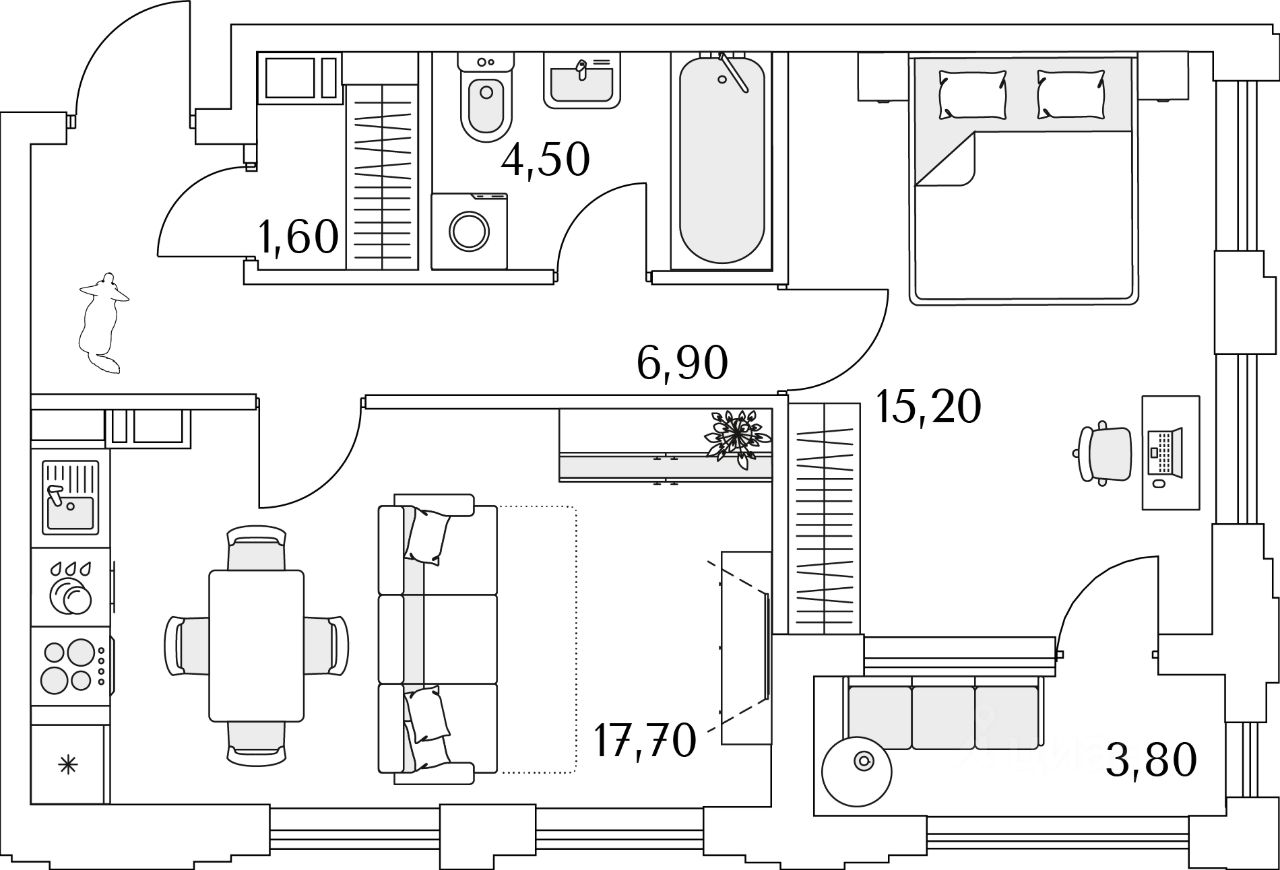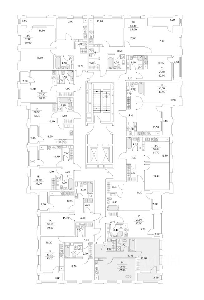 Квартира находится в 13 этажном доме, в Корпус К8 - Тайм Сквер на 3 этаже. Общая площадь квартиры 47,90 кв.м.