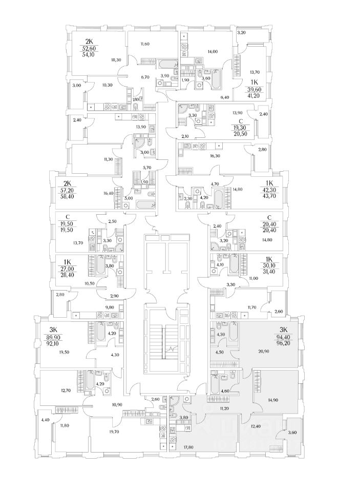 Квартира находится в 13 этажном доме, в Корпус К7 - Тайм Сквер на 12 этаже. Общая площадь квартиры 96,60 кв.м.