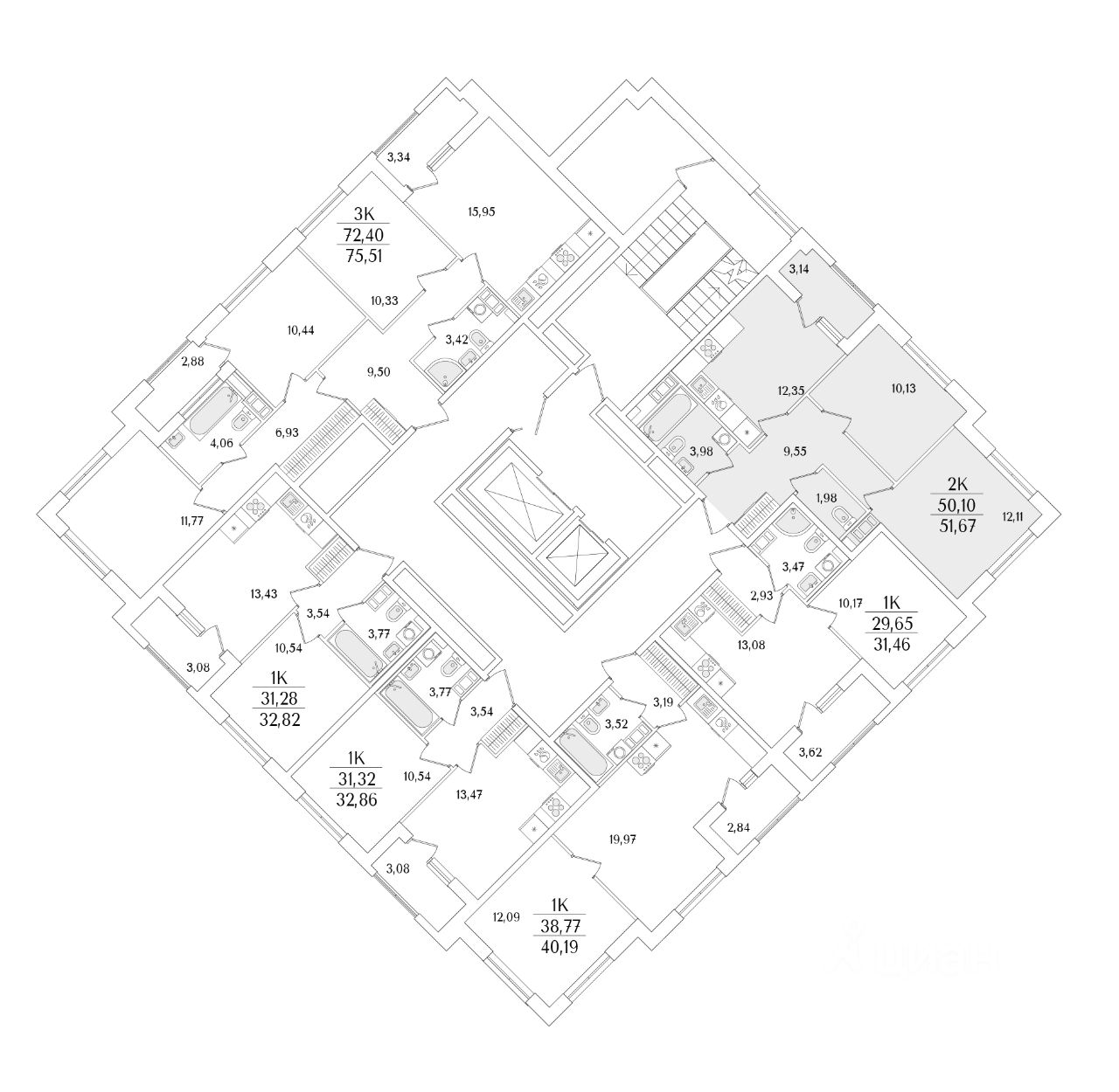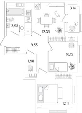 Квартира находится в 13 этажном доме, в Гранат - Корпус К3 на 5 этаже. Общая площадь квартиры 51,67 кв.м.