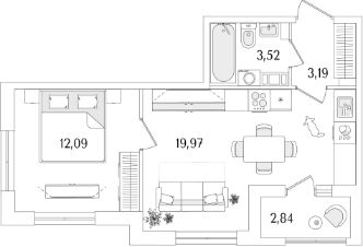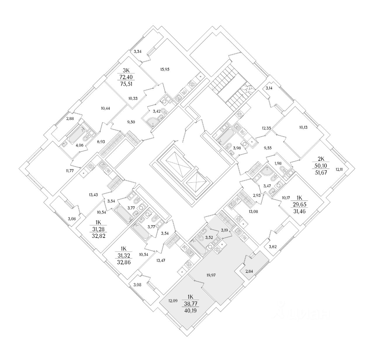 Квартира находится в 13 этажном доме, в Гранат - Корпус К3 на 7 этаже. Общая площадь квартиры 40,19 кв.м.