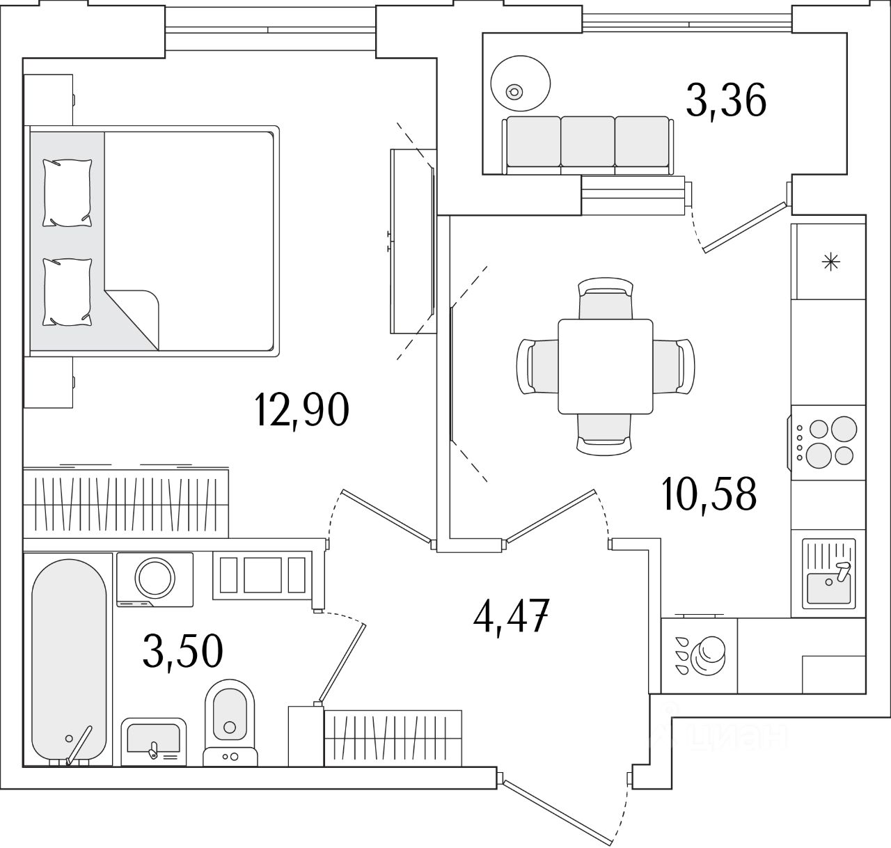 Кухни-гостиные с угловым остеклением. Просторные кухни-гостиные площадью более 20 м². Студии с двумя окнами. Ванные с окном Clerestory. Кухни-гостиные с выделенной нишей под кухню. Спальни с выделенной многофункциональной зоной, в которой можно организовать свой идеальный уголок. Квартиры с просторными лоджиями правильной квадратной формы.