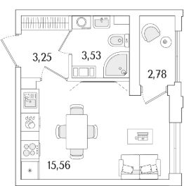 Квартира находится в 13 этажном доме, в Гранат - Корпус К1 на 7 этаже. Общая площадь квартиры 23,73 кв.м.