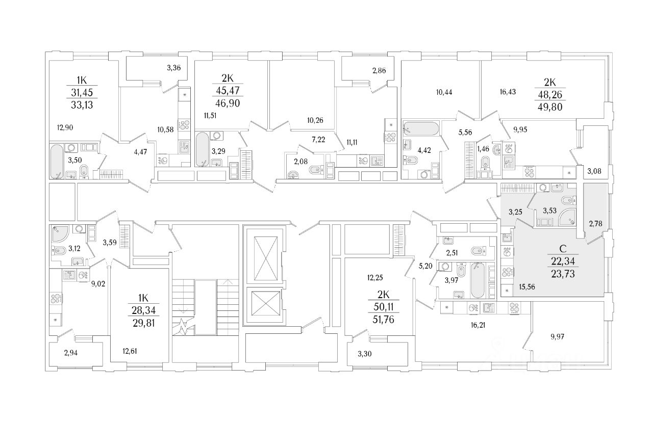 Кухни-гостиные с угловым остеклением. Просторные кухни-гостиные площадью более 20 м². Студии с двумя окнами. Ванные с окном Clerestory. Кухни-гостиные с выделенной нишей под кухню. Спальни с выделенной многофункциональной зоной, в которой можно организовать свой идеальный уголок. Квартиры с просторными лоджиями правильной квадратной формы.